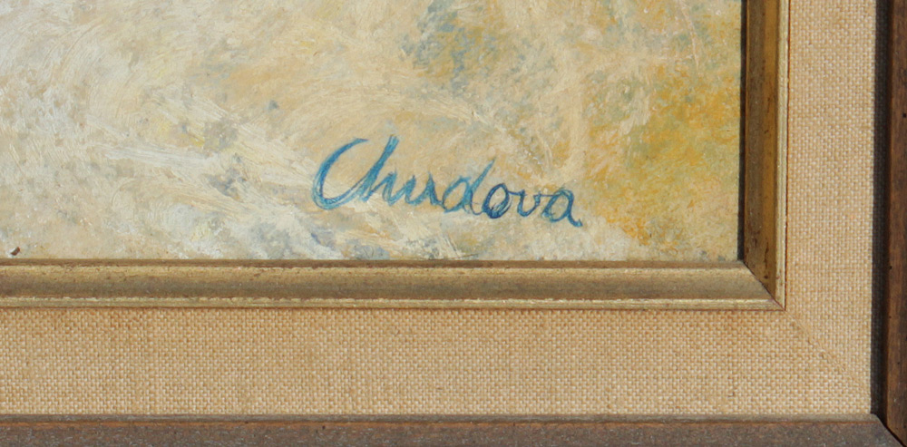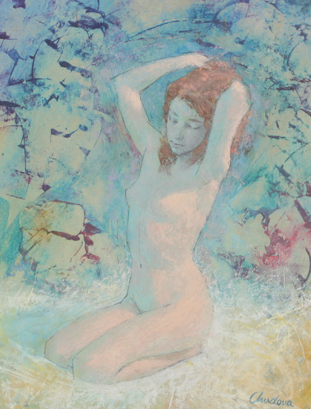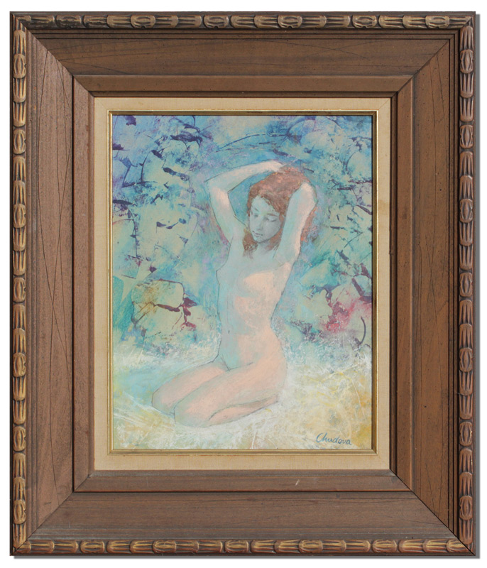CHUDOVA, Steven, (American, 1929- ): Kneeling Nude, Oil/Masonite, 14'' x 11'', signed lower right, framed 22'' x 19''.