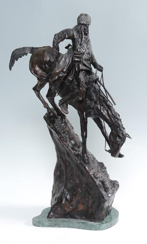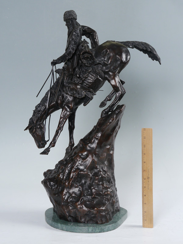 'MOUNTAIN MAN'' BRONZE AFTER REMINGTON: 26 1/2'' h., affixed to marble plinth 27 1/2'' overall.