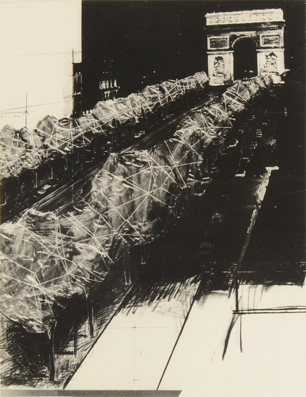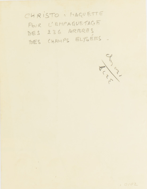 PHOTOGRAPH OF PROJECT BY CHRISTO (CHRISTO VLADIMIROV JAVACHEFF), (BULGARIAN, 1935): Maquette for Wrapped Champs Elysees, 1966, 8 5/8'' x 6 5/8''.