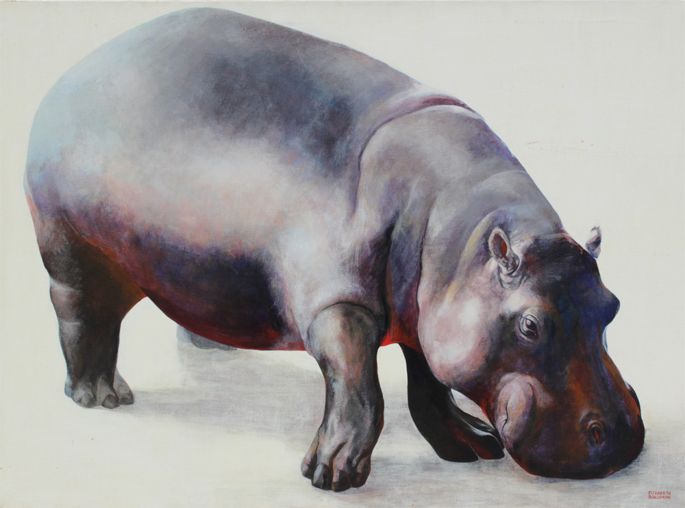 SOLOMON, Elizabeth, (American, 20th C.): Portrait of the Hippopotamus, Oil/Canvas, 36'' x 49 3/4'', signed lower right, unframed.