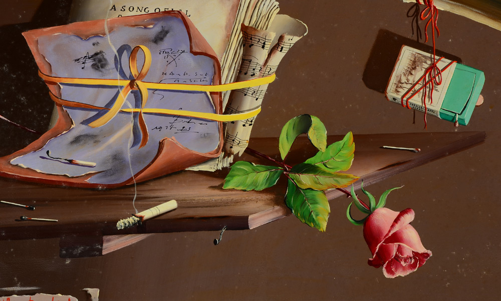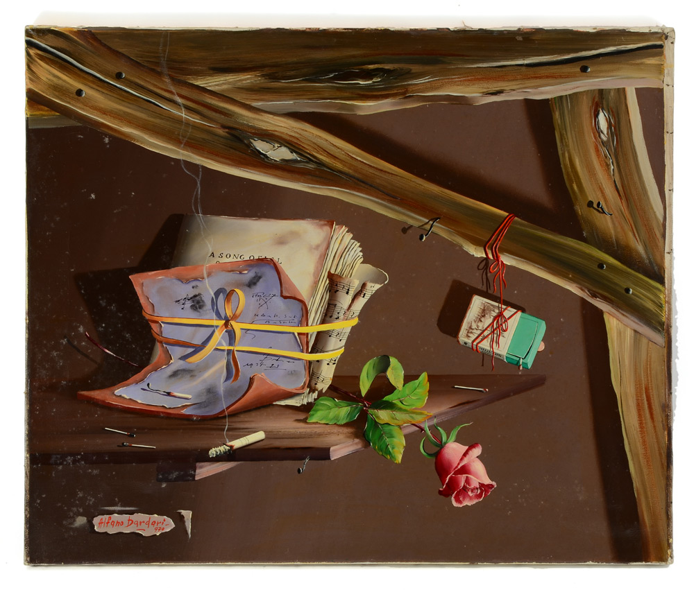 DARDARI, Alfano, (Italian, 1924- ): Trompe l' oeil with Musical Theme and Burning Cigarette, Oil/Canvas, 19 3/4'' x 24'', signed lower left, dated 1970, unframed.