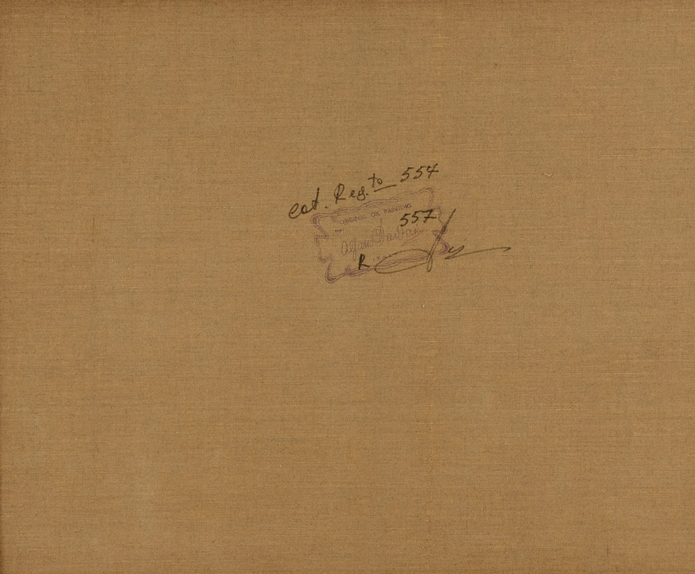 CONDITION: Several minor blemishes with some stretcher bar wear and scattered depressions in the canvas, sold as is.