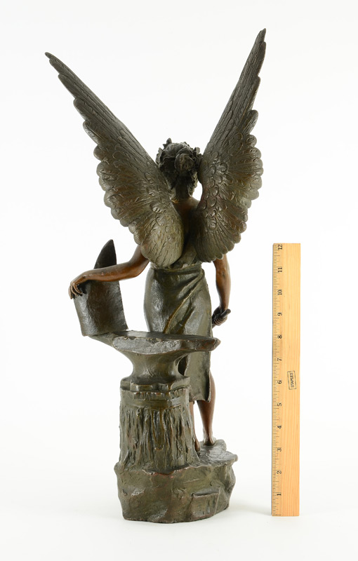 SCHIMMELPFENNIG, Oswald, (German, 1872-1944): Winged Justice, Patinated Metal, 22'' H., incised signature, dated 1900 Berlin.