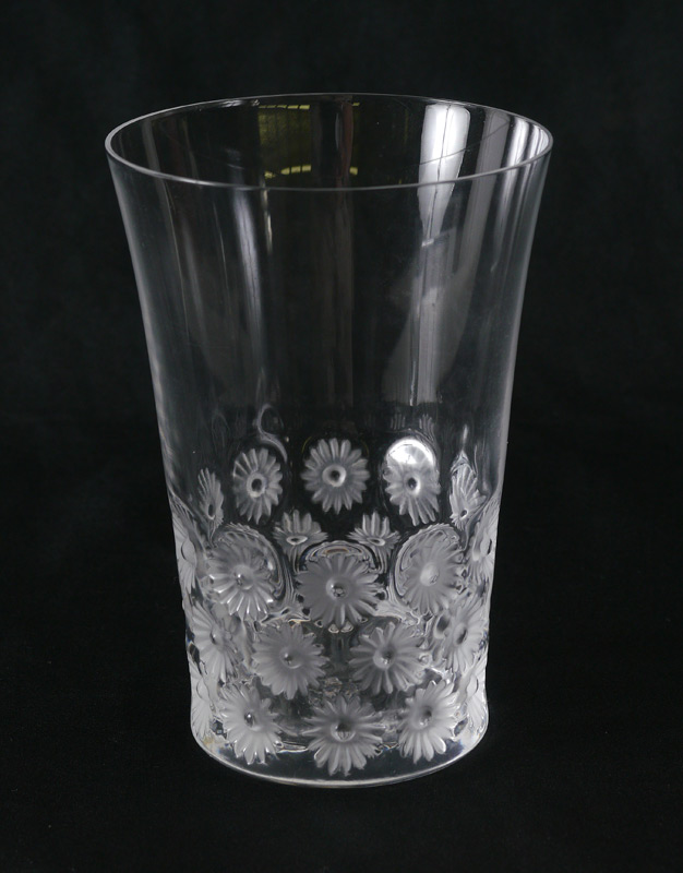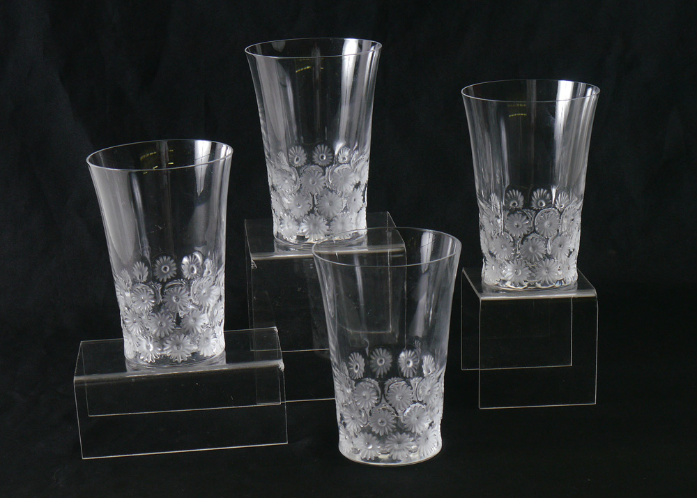 4 LALIQUE CRYSTAL NAPSBURY TUMBLERS: 4 tumblers in the Napsbury pattern by Lalique, floral motif, etched signature. Measures 5'' h. x 3 1/2''.