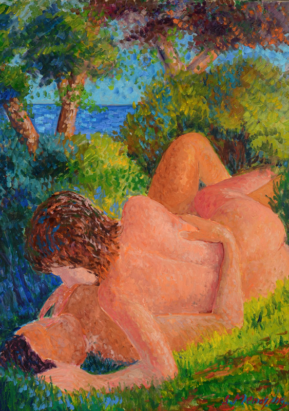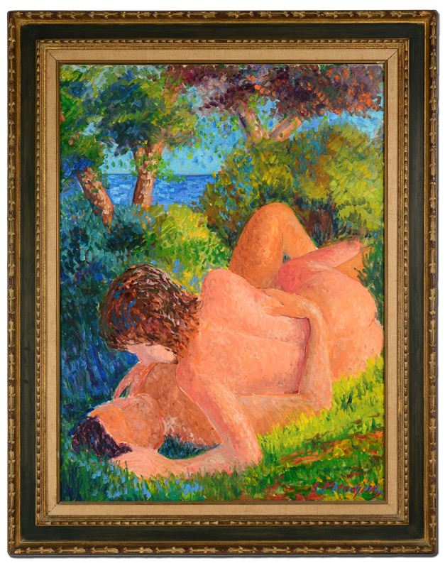 MENDJISKY, Serge, (French, 1929): ''Etude L'Amour'', Oil/Canvas, 32'' x 24'', signed lower right, titled verso, acquired at a Benefit Auction for Channel 2 in Miami, Florida, encased in original carved and painted frame with minor wear 38 1/2'' x 30 1/2''.