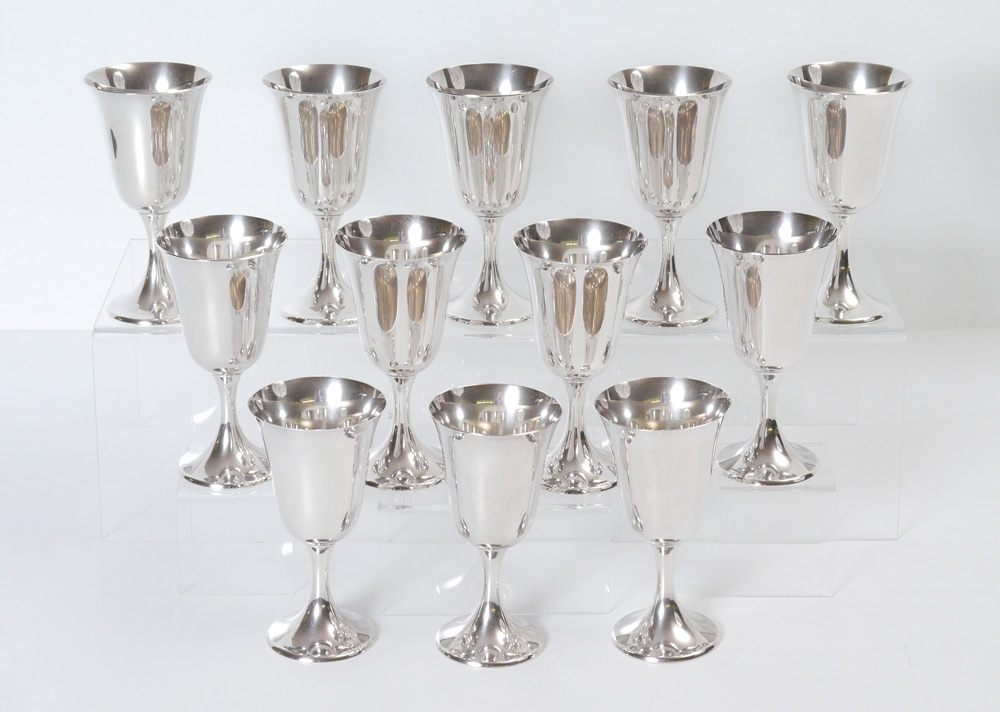 12 GORHAM STERLING GOBLETS: Marked on base Gorham, Sterling, 272. 6 1/2'' h., approx. 71.7 troy oz.