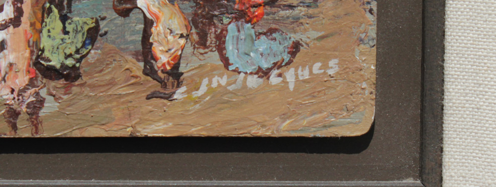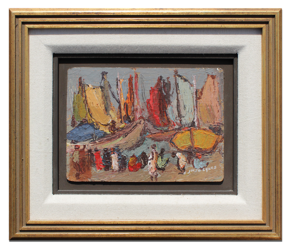 JEAN-JACQUES, Carlo, (Haitian, 1943-1990): Haitian Harbor Painting with Figures, Oil/Board, 5'' x 7'', signed lower right, framed 10'' x 12'', Gallery Marassa Haiti.