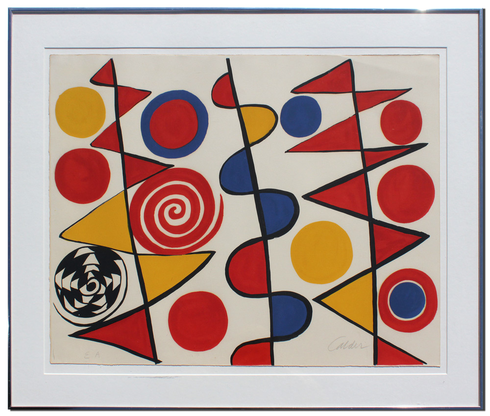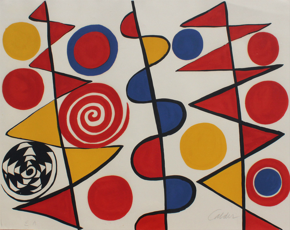 CALDER, Alexander, (American, 1898-1976): ''Pennants'', Color Lithograph, 23 1/4'' x 30 1/2'', pencil signed lower right, marked ''EA'' lower left, metal frame 30'' x 37 1/4''.