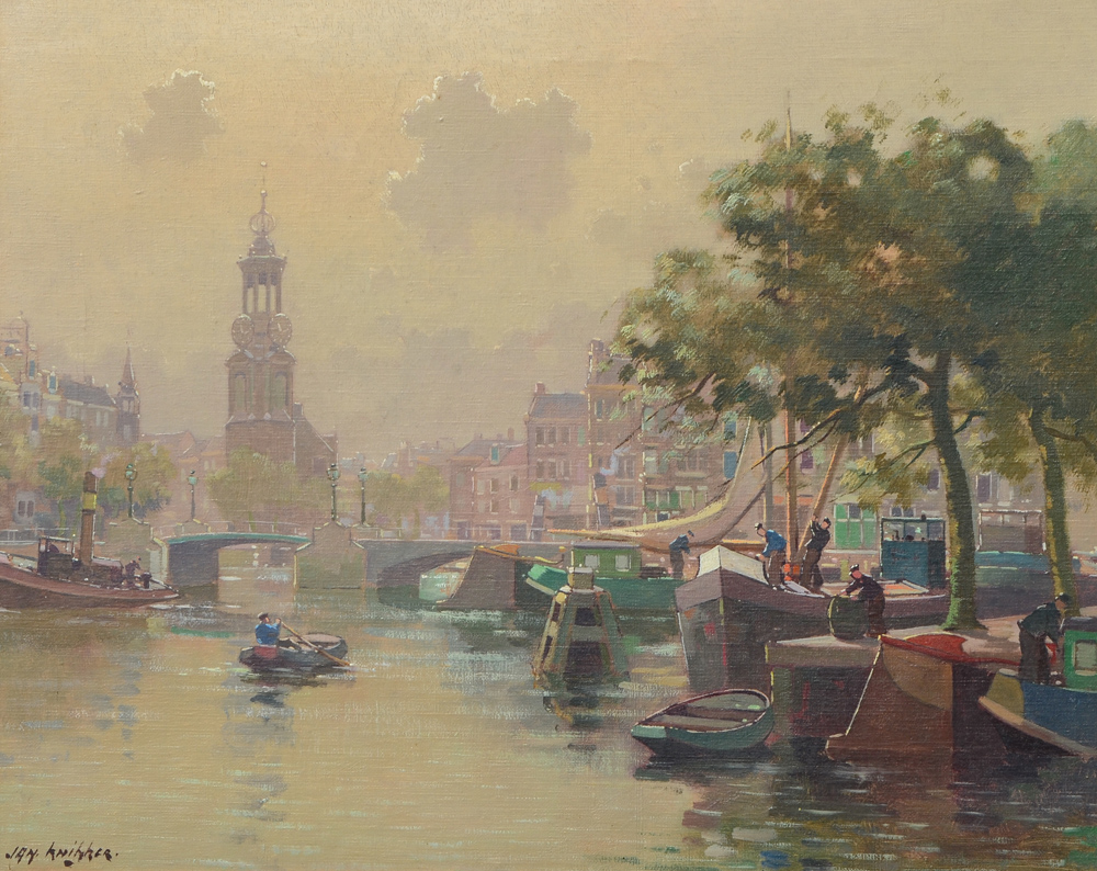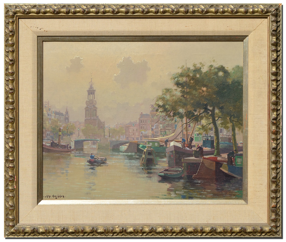 KNIKKER Jr., Jan,(Dutch, 1911-1990): Amsterdam Canal Scene, Oil/Canvas, 16'' x 20'', signed lower left, carved and gilded frame 23'' x 27''.