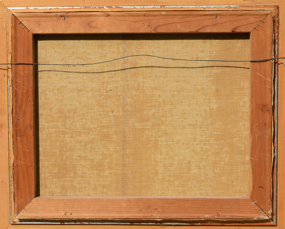 CONDITION: Needs cleaning, and minor stretcher bar wear in upper margin.