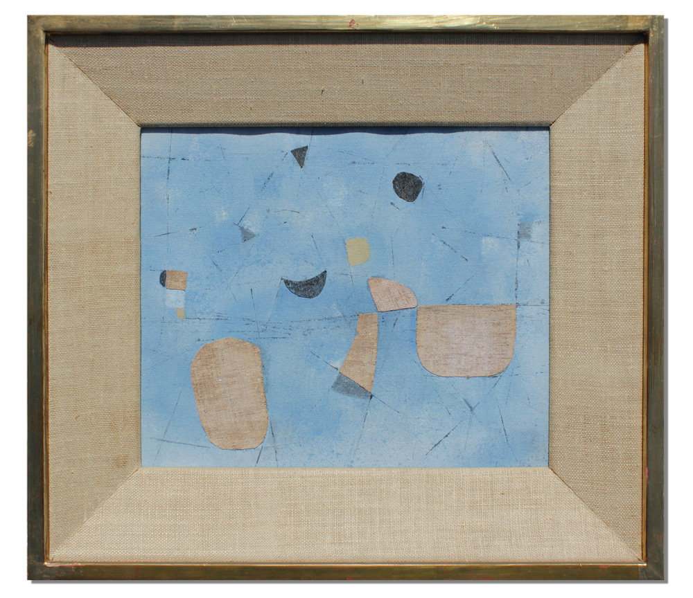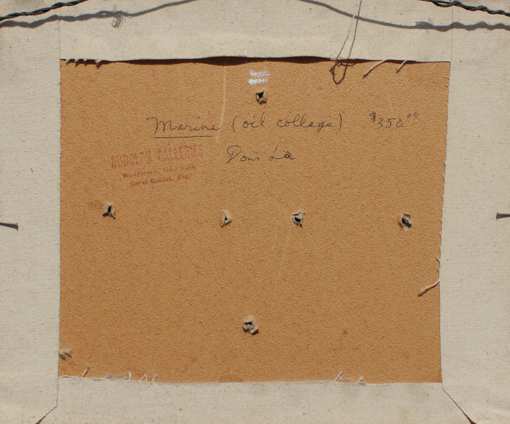 LEE, Doris Emrick, (American, 1905-1983): ''Marine'', Oil Collage, 11'' x 13'', signed lower right, signed and titled verso, framed, 16 1/2'' x 18'', Rudolph Galleries stamp verso.