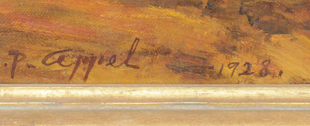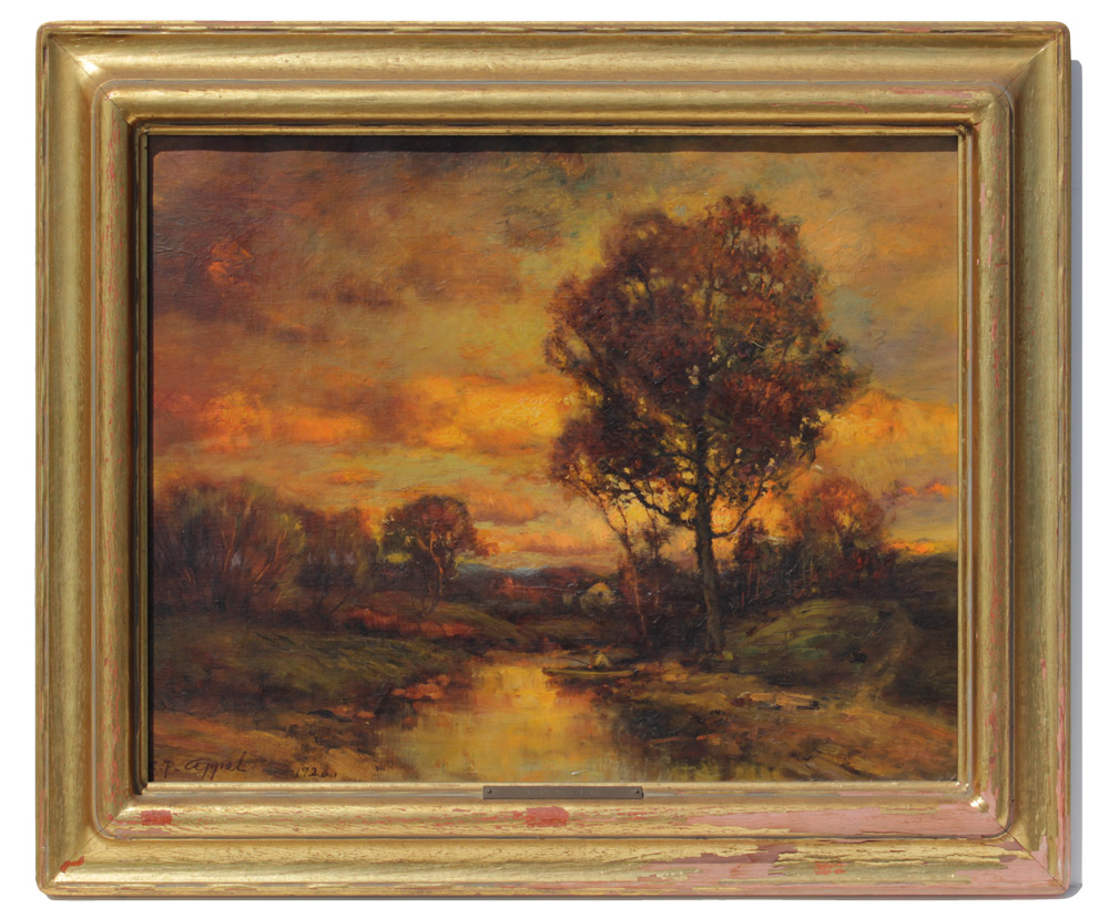 APPEL, Charles, P., (American, 1857-1928): Autumnal Scene with Fisherman in a Stream, Oil/Canvas, 16'' x 20'', signed lower left, dated 1928, encased in a period gilded frame 21'' x 25''.