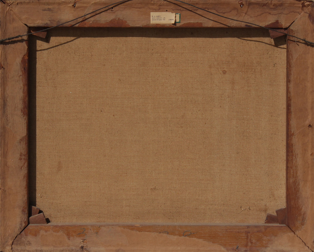 CONDITION: Stretcher bar wear, scattered craquelure throughout, needs cleaning, frame does have extensive gilt loss, sold as is.