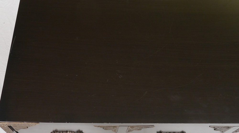 CONDITION: Scratches, rubs and blemishes, especially to top. Missing lower left trim decoration.
