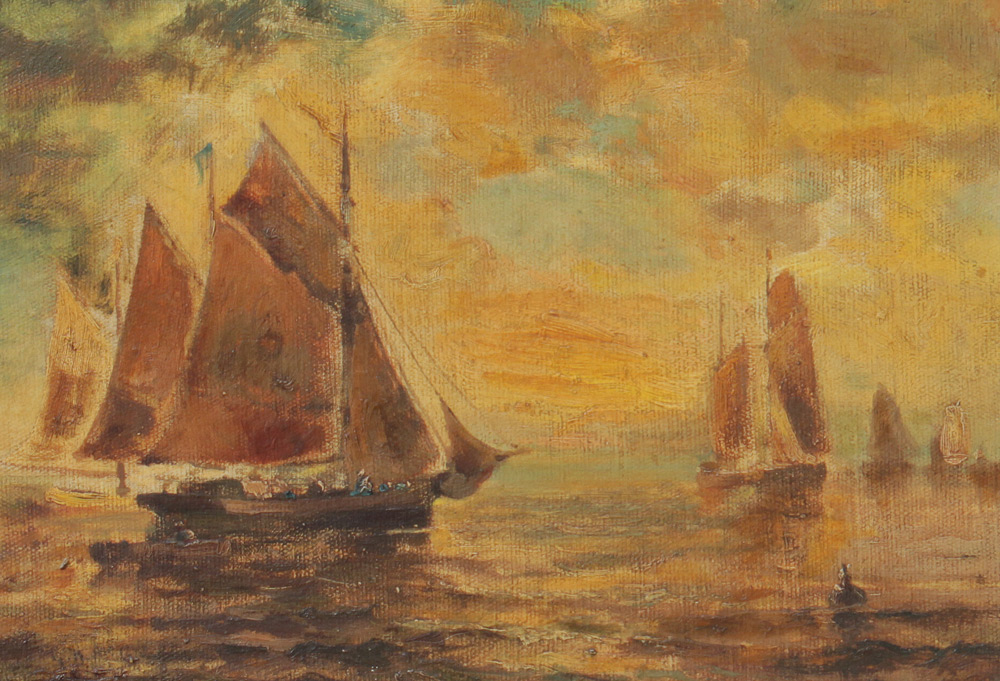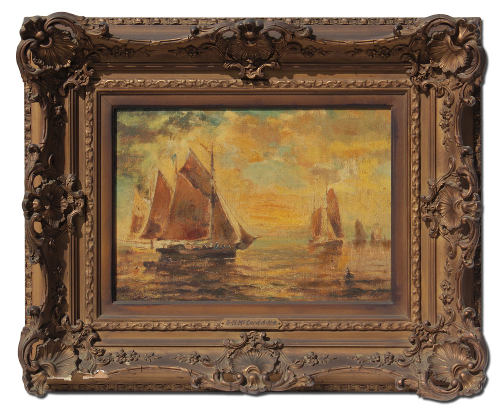 McCORD, George Herbert, (American, 1848-1909): Harbor Scene, Oil/Canvas, 10'' x 14'', signed lower left, encased in period pierce carved and gilded gesso frame 18 1/4'' x 22 1/4''.