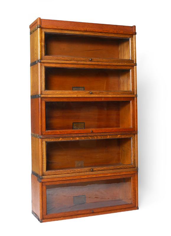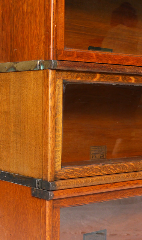 GLOBE WERNICKE STACKING OAK BOOKCASE: 5 stack barrister oak bookcase, overall measures 62'' h. x 34'' x 11 1/4''