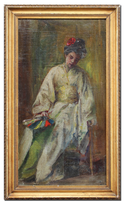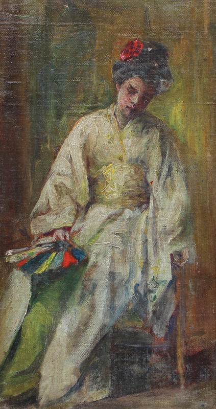 GOOD IMPRESSIONIST PAINTING OF GIRL IN KIMONO: Oil/Canvas on board, 17 1/2'' x 9 5/8'', no visible signature, gilded frame 20'' x 12 1/4''.