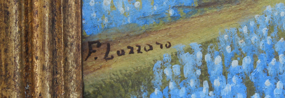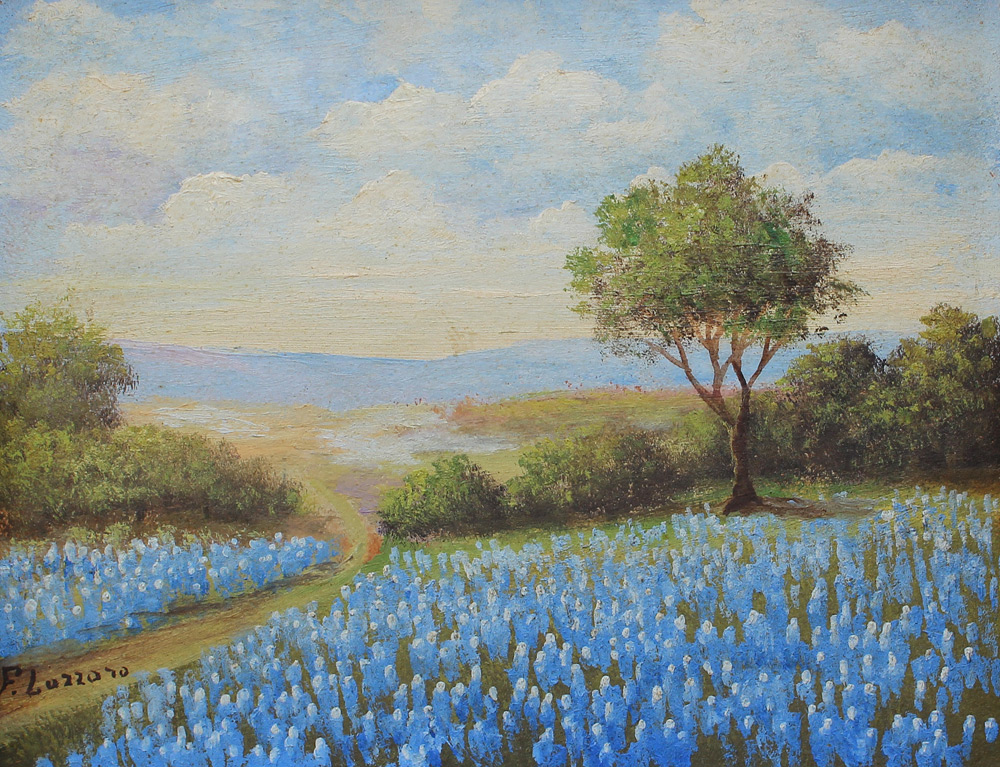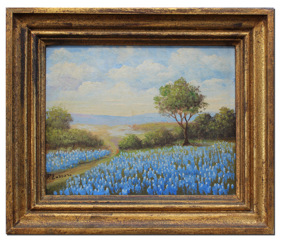 F. LAZZARO TEXAS BLUE BONNET LANDSCAPE PAINTING: Oil/Board, 8'' x 10'', signed lower left, original frame 11'' x 13''.