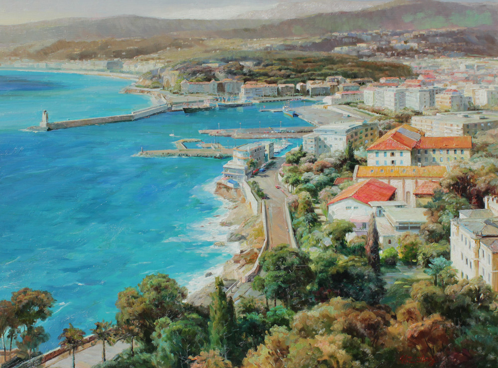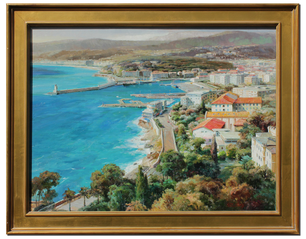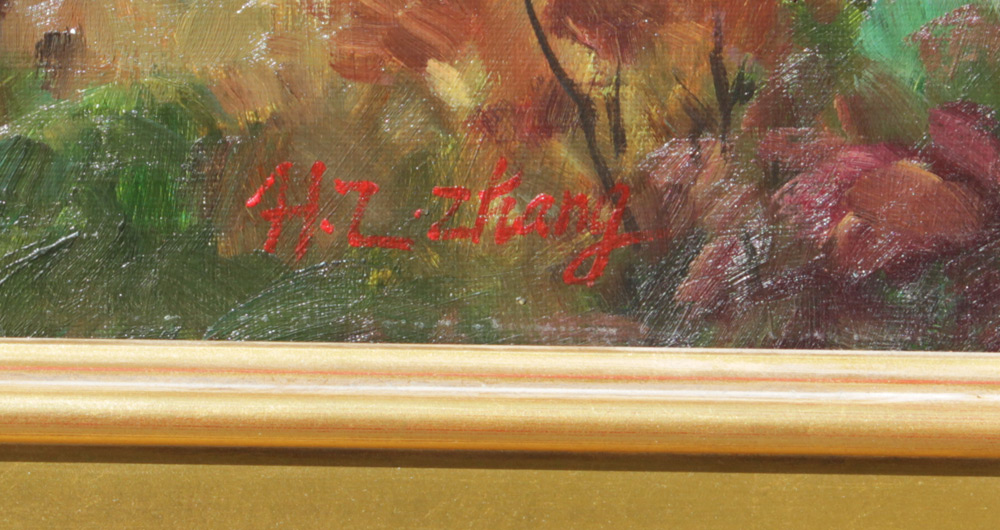 ZHANG, H.L., (Chinese, 20th Century): Coastal Harbor, Oil/Canvas, 30'' x 40'', signed lower right, gilded frame 37'' x 47''.