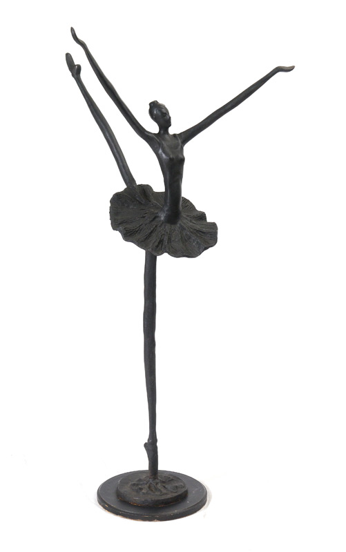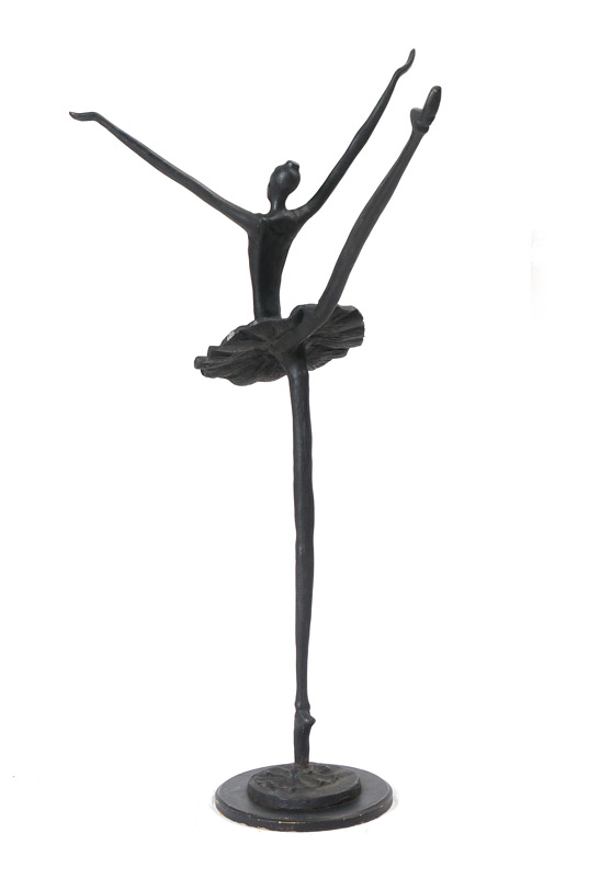LARGE CAST IRON SCULPTURE DEPICTING MARGOT FONTEYN, 46'' h.: Affixed to a wooden beveled and painted plinth, overall 47'' h. x 26'' w.