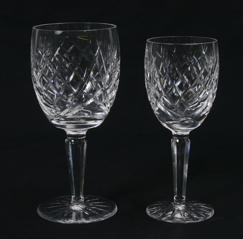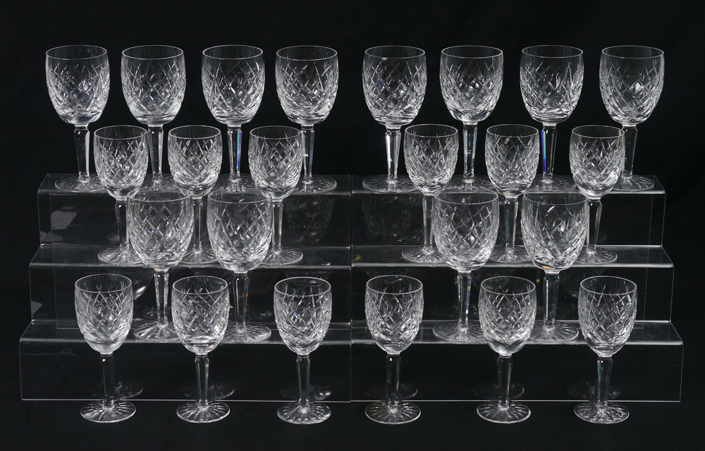 24 PIECE WATERFORD AVOCA CRYSTAL STEMWARE: 24 pieces in the Avoca pattern to include 12 water goblets (7''), 12 claret wines (6 1/2'').