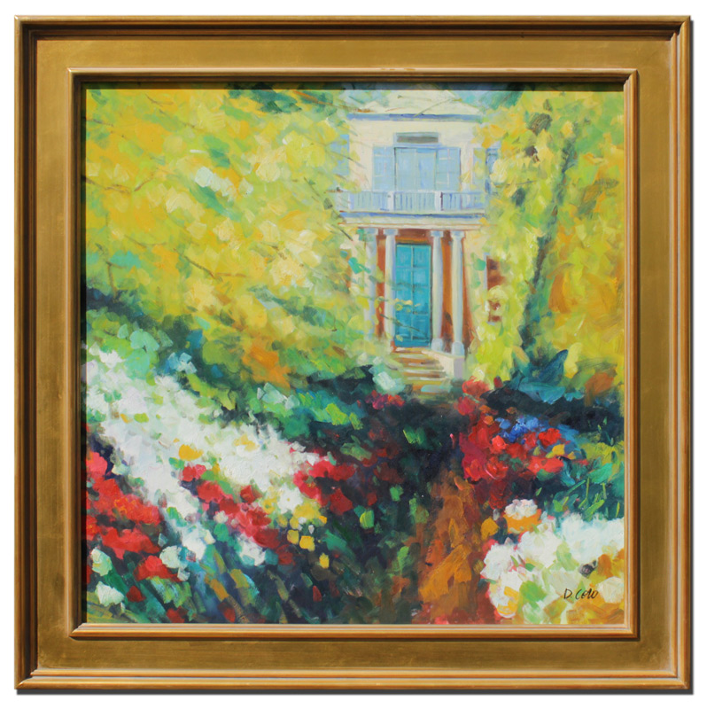 VIEW FROM THE GARDEN PAINTING SIGNED CORO: Oil/Canvas, 30'' x 30'', signed lower right, fine gilded framing 37'' x 37''.