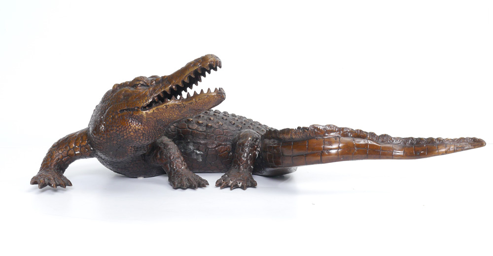 BRONZE ALLIGATOR SCULPTURE: 7 1/2'' h. x 24'' w. x 12'' d.
