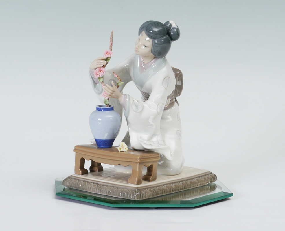 LLADRO PORCELAIN FIGURINE: ORIENTAL GIRL #4880, Vincente Martinez sculptor, issued 1973 retired 1997, approx. 7.75''h. x 6.5'' x 4.5''.