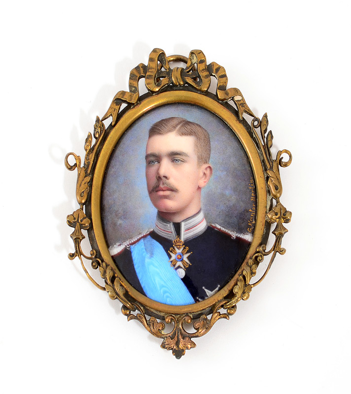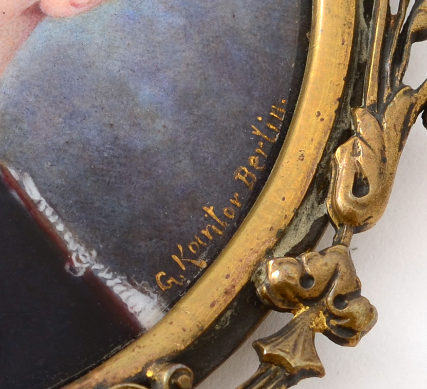EXCEPTIONAL MINIATURE PORTRAIT PAINTING OF A MILITARY GENTLEMAN SIGNED G. KANTOR, BERLIN: Enamel/Copper, Oval measurements 2 1/4'' x 2'', encased in a metal frame 2 1/2'' x 2 1/8''.