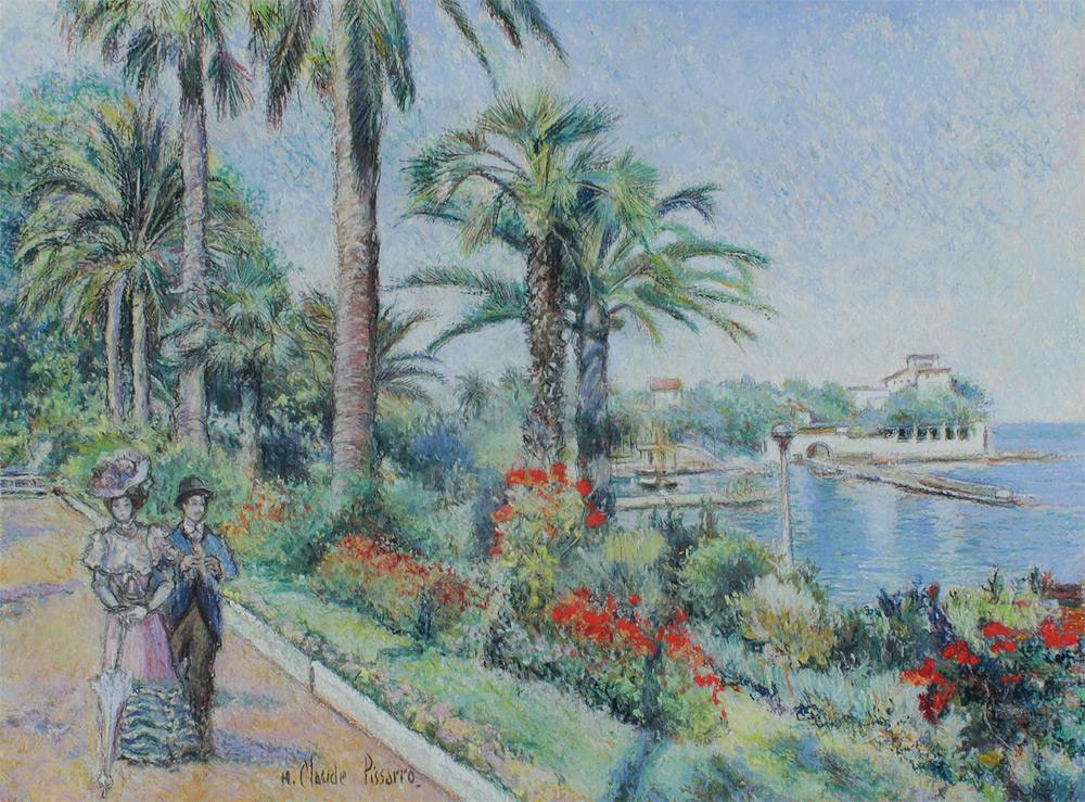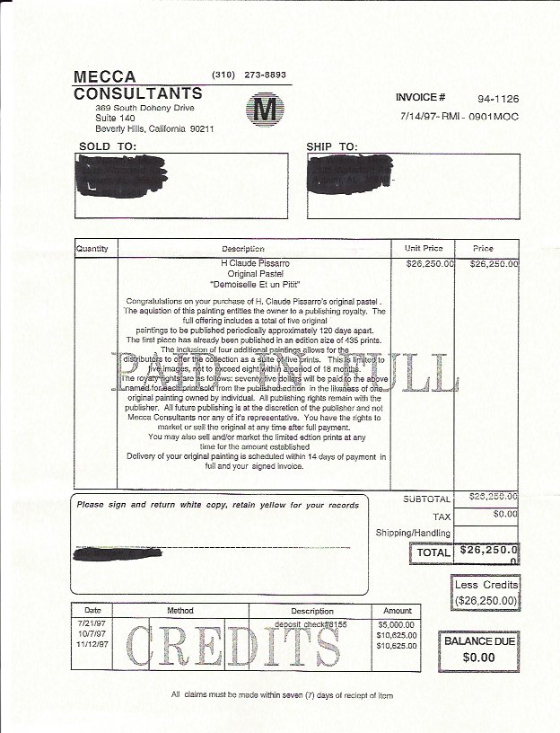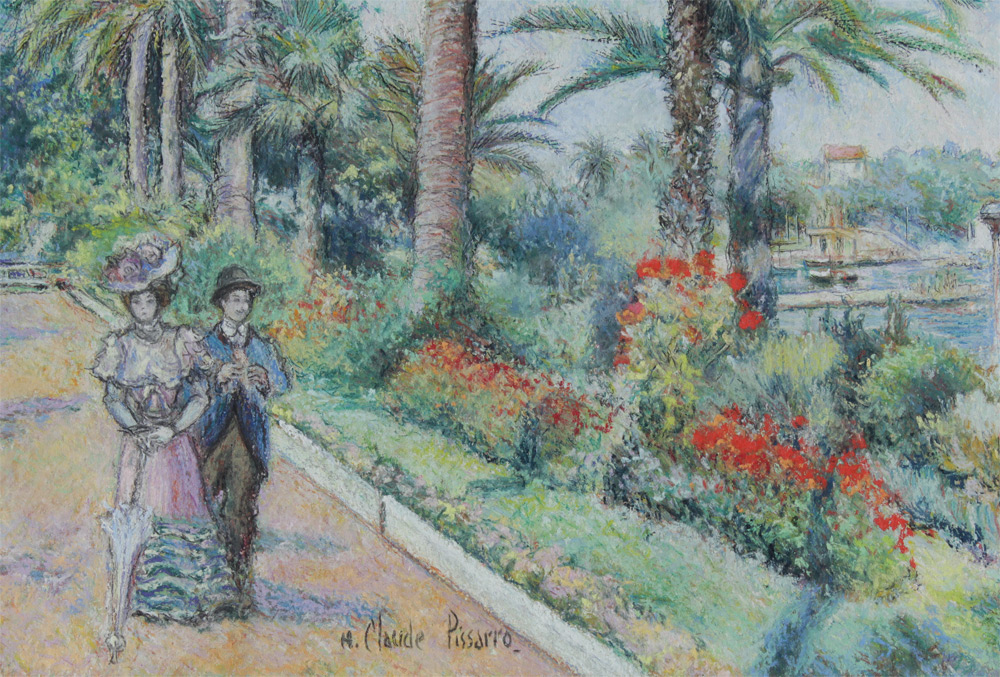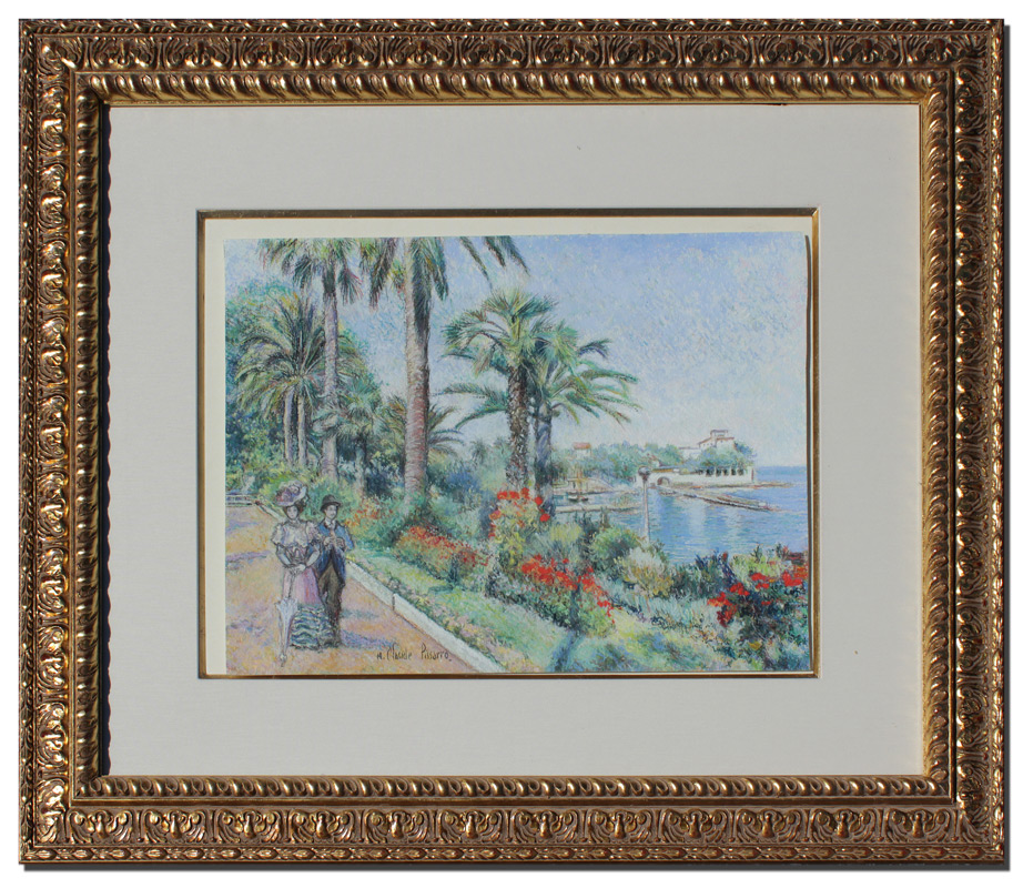PISSARRO, Hughes Claude, (French, 1935-): ''Demoiselle et un Petit'', Pastel, 14 1/2'' x 20'', signed lower left, float mounted and framed, 28'' x 34''. Original sales receipt shows price of $26,000.