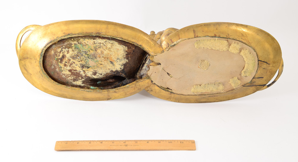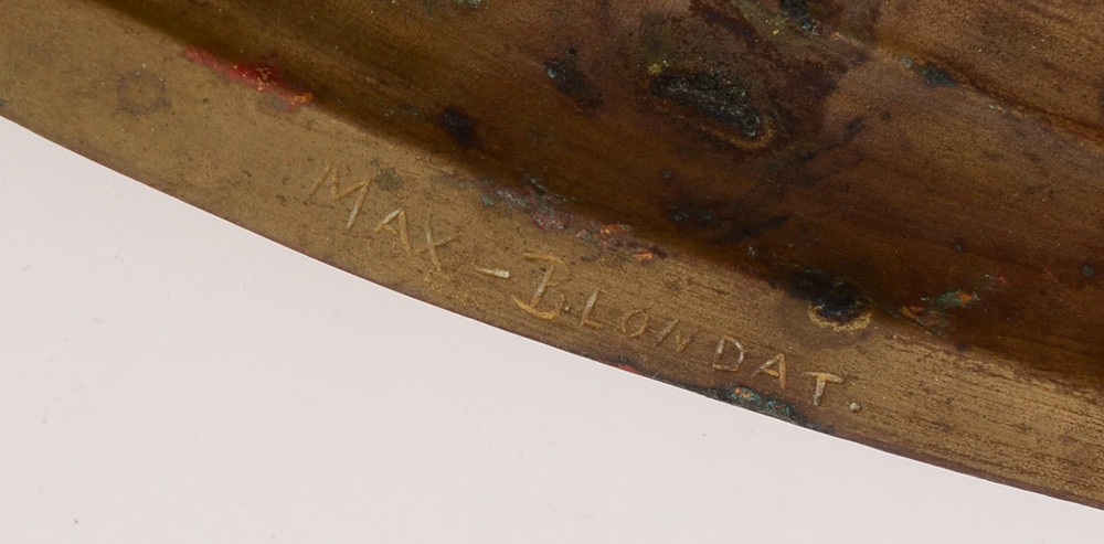 CONDITION: Several areas of patina discoloration from wax, dirt, and time.