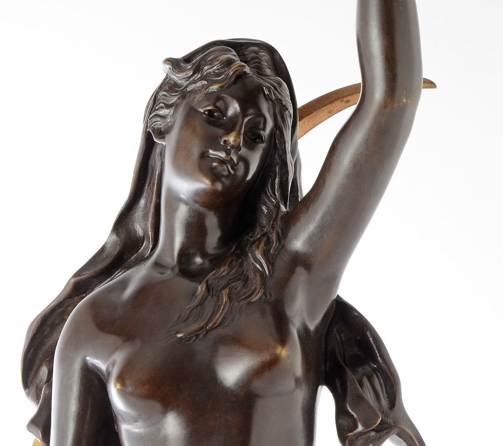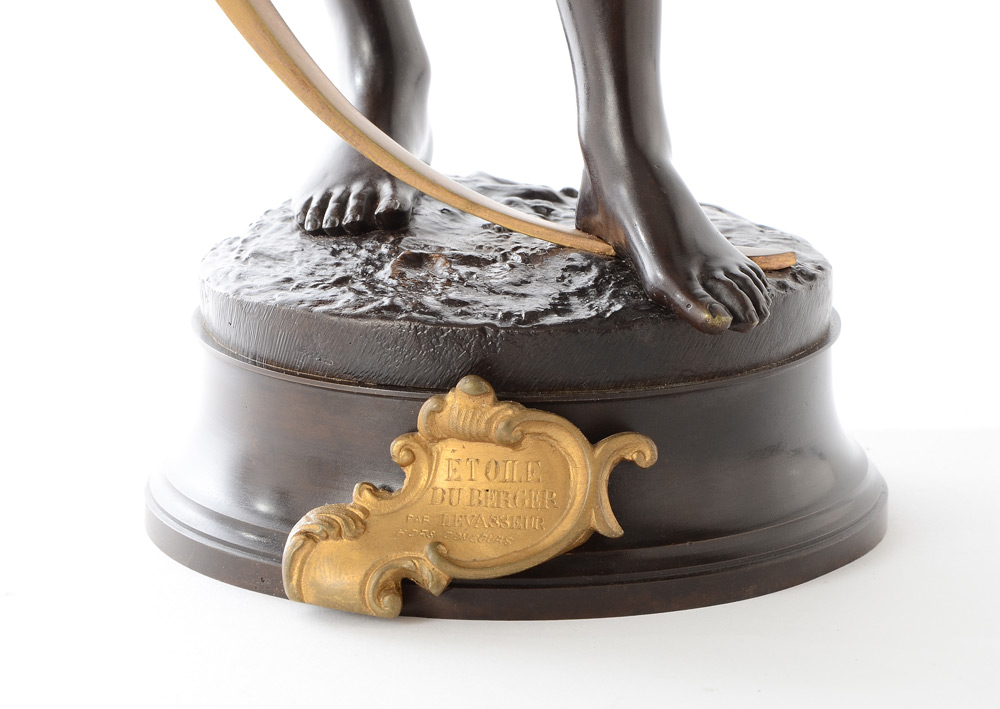 LEVASSEUR, Henri Louis, (French, 1853-1934): ''Etoile du Berger'', Depicting a Young Nude Maiden Holding a Star above her Head, Patinated Bronze, 23 1/2'' h., incised signature to base.