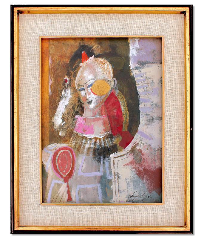 OJEDA, Froylan, (Mexican, 1932-1991): ''Payaso'', Acrylic/Masonite, 18'' x 13 1/2'', signed lower right, Gallery label affixed verso, Galeria Tasende, 1966 with original packaging, 24 1/2'' x 20 1/4''.