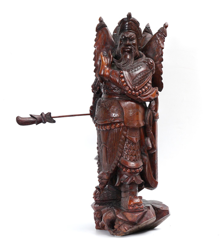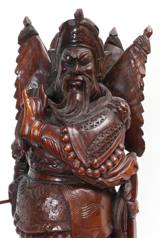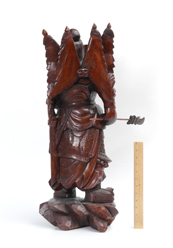 CARVED WOOD JAPANESE WARRIOR STATUE: Figure of a Samurai holding his naginata, overall 28 1/4'' h. x 12'' x 12''.