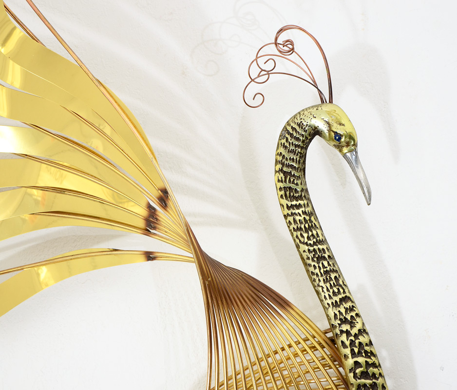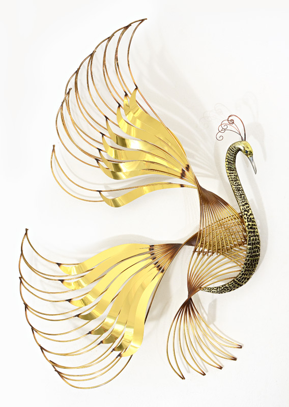 CURTIS JERE PEACOCK WALL SCULPTURE: Signed on tail feather, approx. 46'' x 31'', depth from wall approx. 9''.