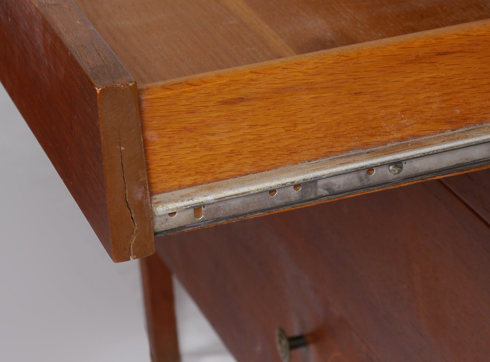 CONDITION: Chips to veneer on sides, scratches to drawers.
