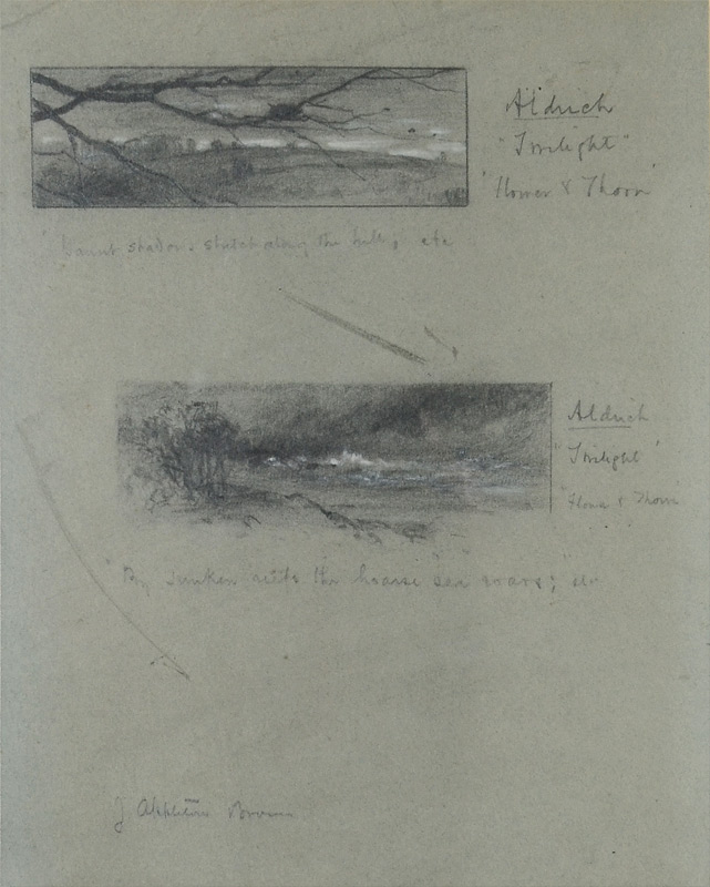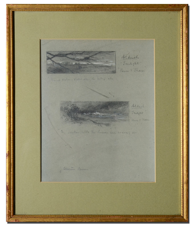 BROWN, John Appleton, (American, 1844-1902): Two Framed Landscape Sketches ''Twilight'' & ''Flower & Thorn'', paper Sight Size 9 3/4'' x 8'', pencil signed lower left, gilded frame with minor wear 15 1/4'' x 12 3/4''.