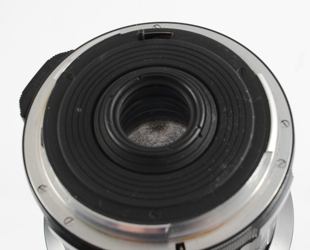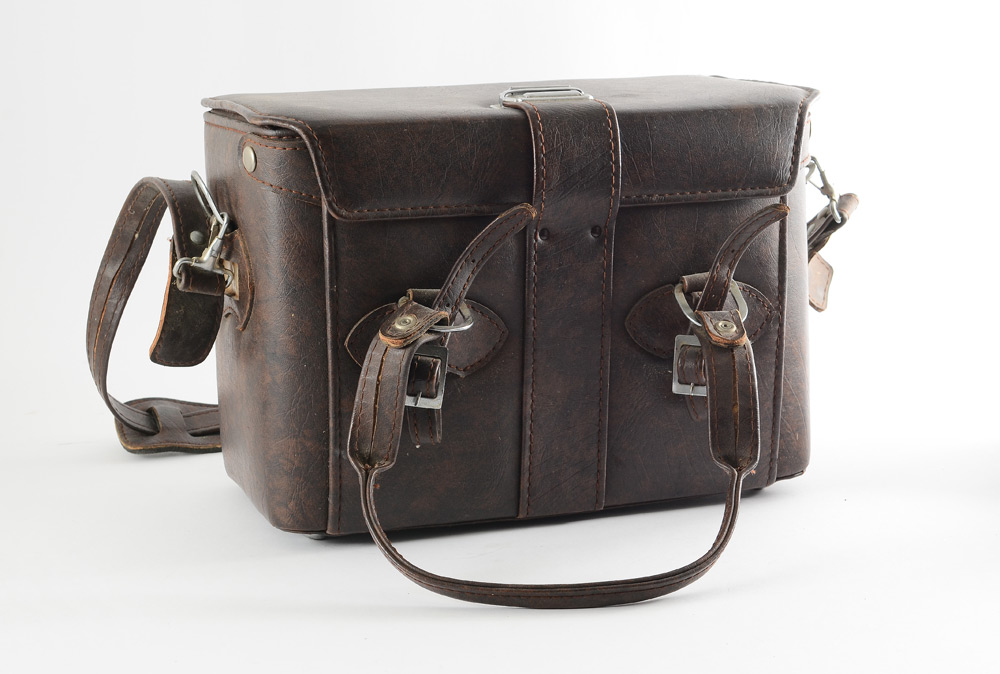 CONDITION: Both 150m and 55mm lenses exhibit light brassing on mounts. Internal glass has fungus that will most likely dimish image quality. Detachable viewfinder has small dent near top but appears functional. Camera has not been officially tested for functionality and is sold As-Is.