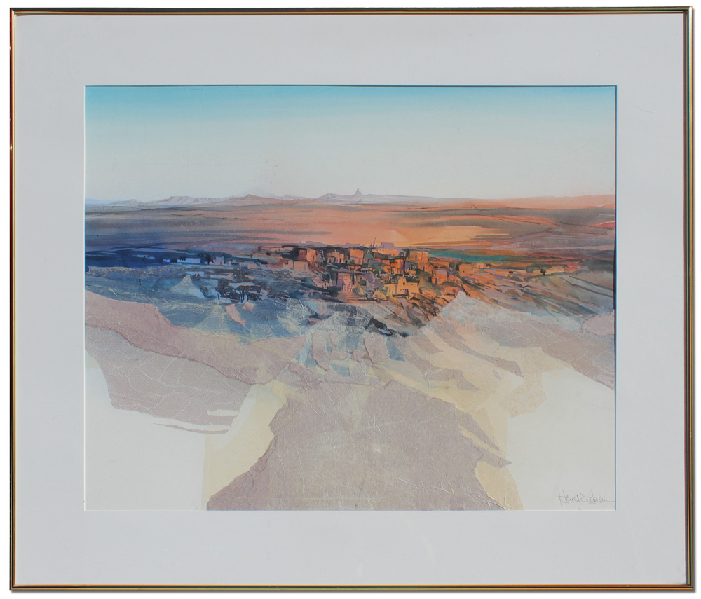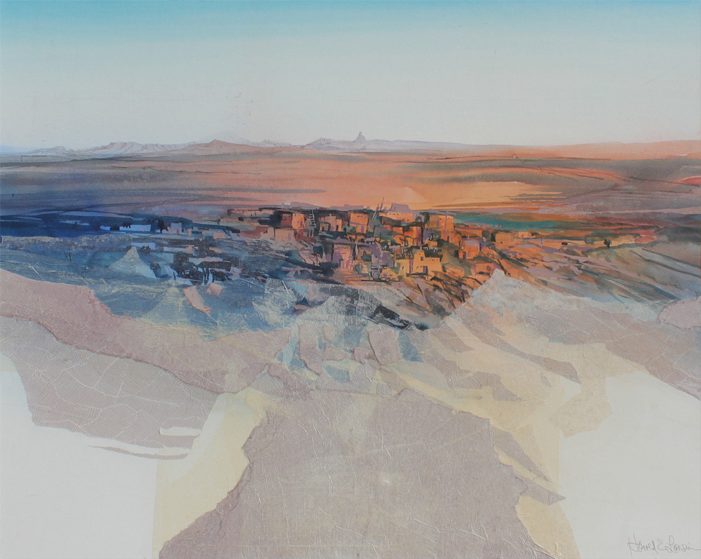 LARSON, Harold, (American, 1935-)): Abstract Western Landscape, Watercolor, sight size 29 1/2'' x 39'', signed lower left, framed, 40'' x 50''.
