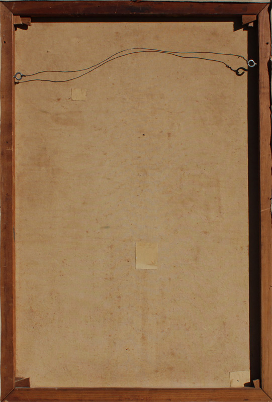 CONDITION: Stretcher bar wear, several minor abrasions, scattered craquelure, may need a light cleaning.