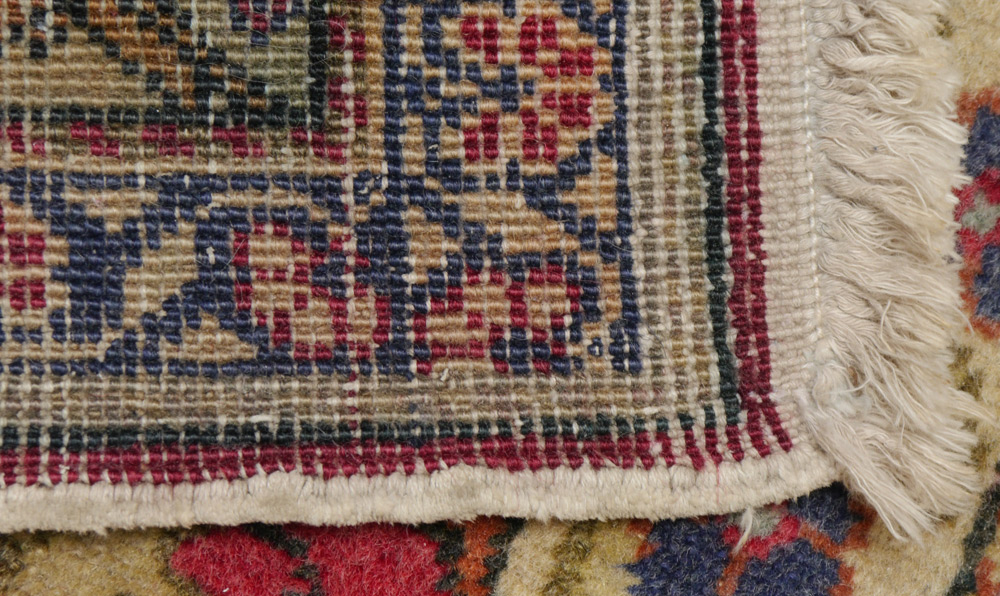 CONDITION: There are some areas of visible wear as well as some color run but neither condition detracts much from the overall look of the rug.