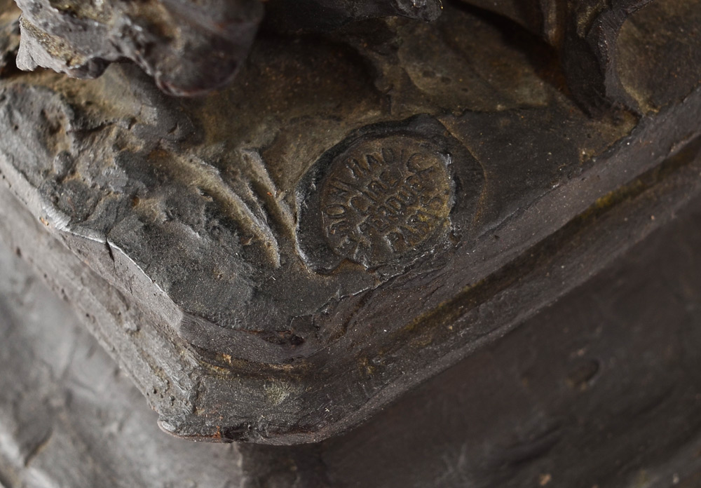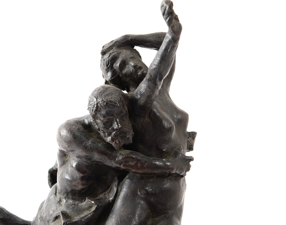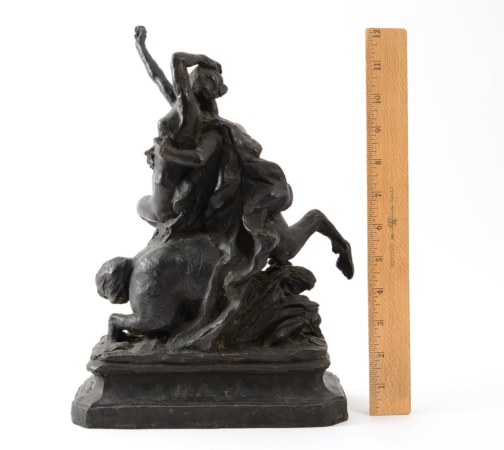CENTAUR & NYMPH BRONZE SIGNED H. ALLOUARD: 12 1/2'' h. x 8 1/2'' w. x 4 1/2'' d., incised initials H.A., also incised signature and stamp from Meroni Radic Cira, Pardue, Paris Foundry Stamp.