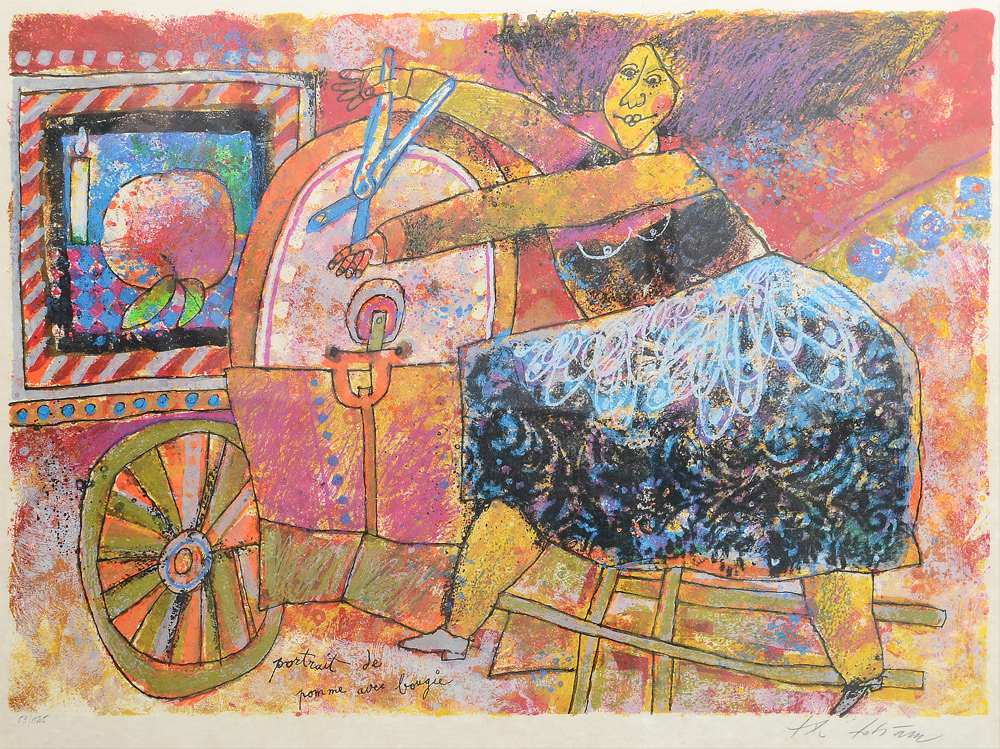 TOBIASSE, Theo, (American, 1927-2012): Portrait de Pomme avec Bougie Lithograph, Sight size 22'' x 28'', pencil signed lower right, #'d 59/125 lower left, frame 28 1/2'' x 34 1/2''.