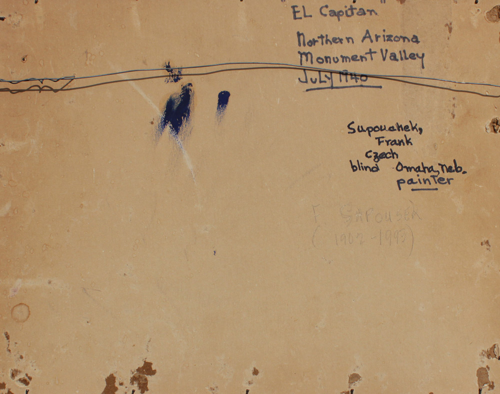 SAPOUSEK, Frank, (American, 1902-1993): ''El Capitan'', Northern Arizona Monument Valley, July 1940, Oil/Canvasboard, 10 1/4'' x 13'', monogrammed lower right, titled verso, gold frame 12'' x 14 3/4''.