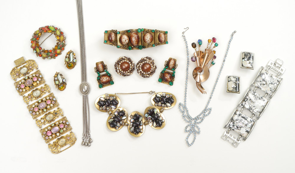 TRAY LOT COSTUME JEWELRY SCHIAPARELLI, FLORENZA, CORO