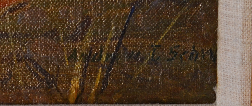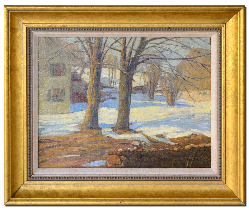 SCHWARTZ, Andrew Thomas, (American, 1867-1942): Winter Village Landscape, Oil/Canvas, 12'' x 16'', signed lower right, contemporary gilt frame 17 1/2'' x 21 1/2''.
