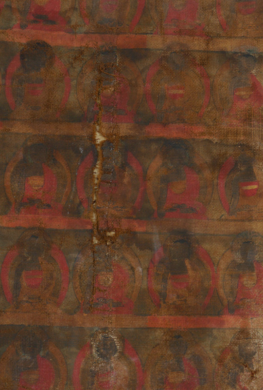 CONDITION: Not examined out of the frame but there are repairs to tears and possible moisture damage, sold as is.