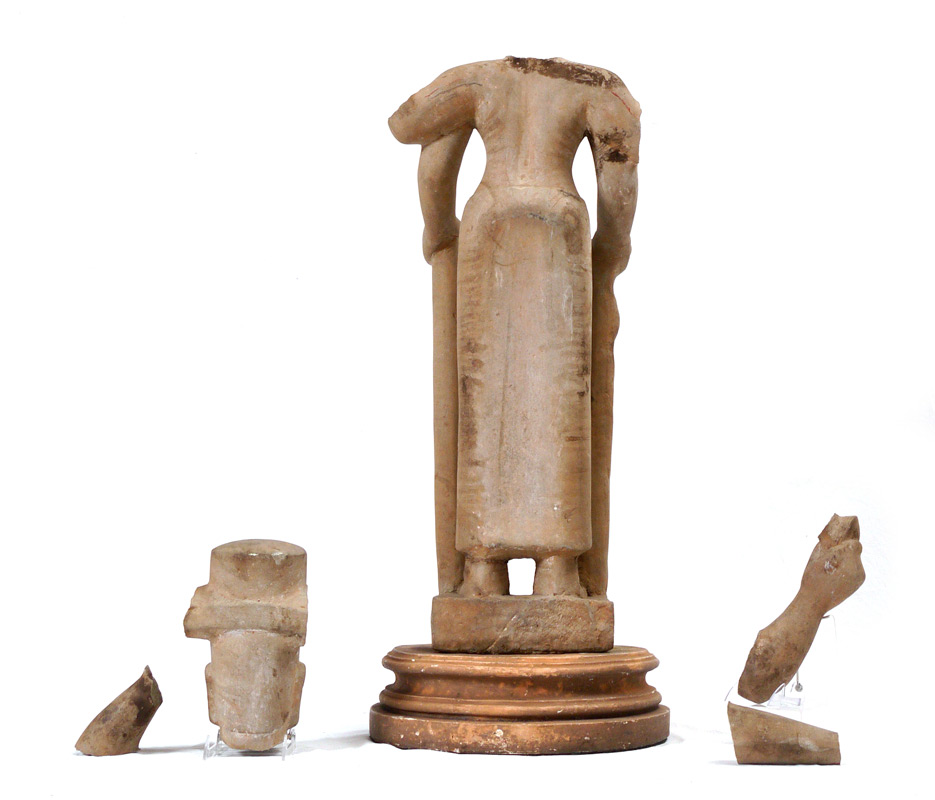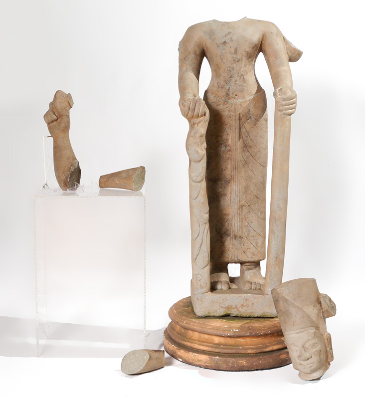 LARGE KHMER? STONE STATUE: Age unknown, used to be 1 solid piece of carved stone, now it's several, all for one money, 42'' h.