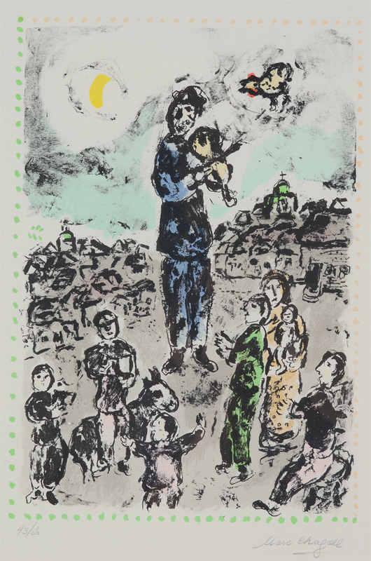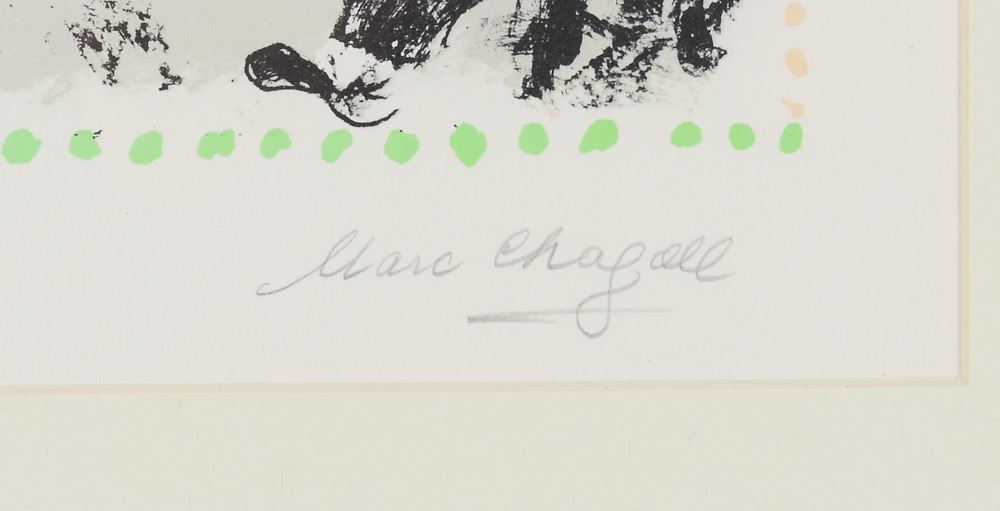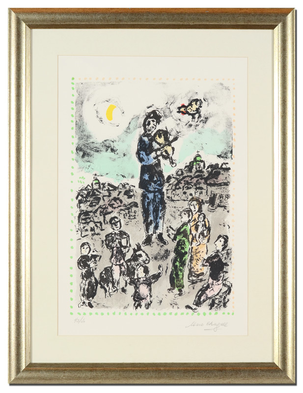 CHAGALL, Marc, (Russian-French, 1887-1985): ''Concert in the Park'', 1983 Lithograph in Color Pencil, Sight size 23'' x 17'', signed lower right, #'d 43/50 lower left, framed 29 1/2'' x 23''.