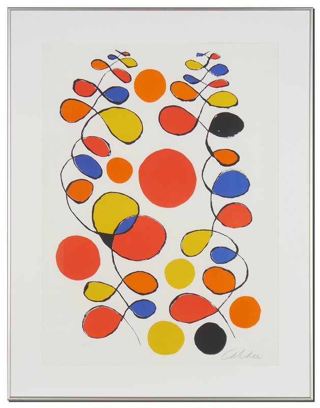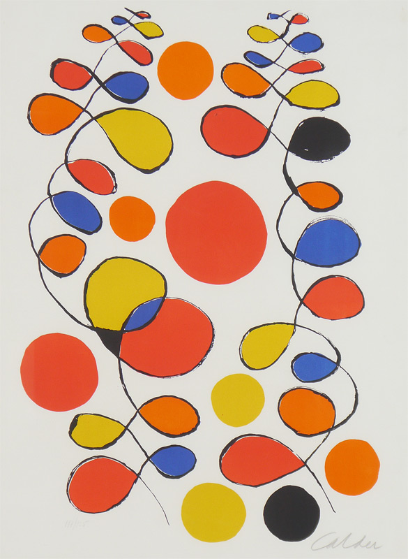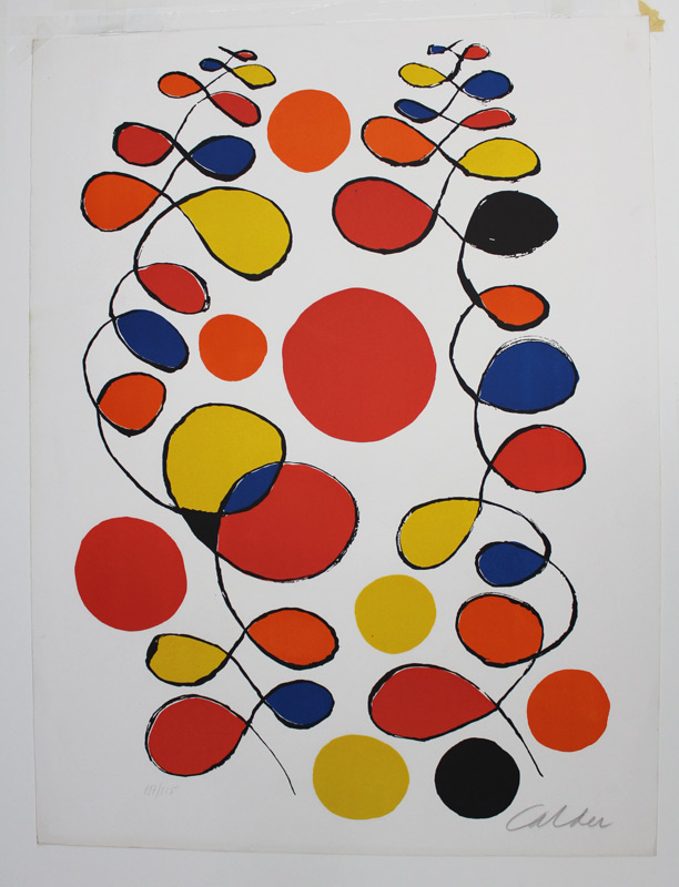 CALDER, Alexander, American, (1898-1976): ''Copeaux de Spirales'' Lithograph, size with margins 31 5/8'' x 23 7/8''. Published 1969, numbered lower left 117/125, Published by Maetgh, signed Calder lower right, 32'' x 24''. From the William Crawford Plumley Estate.